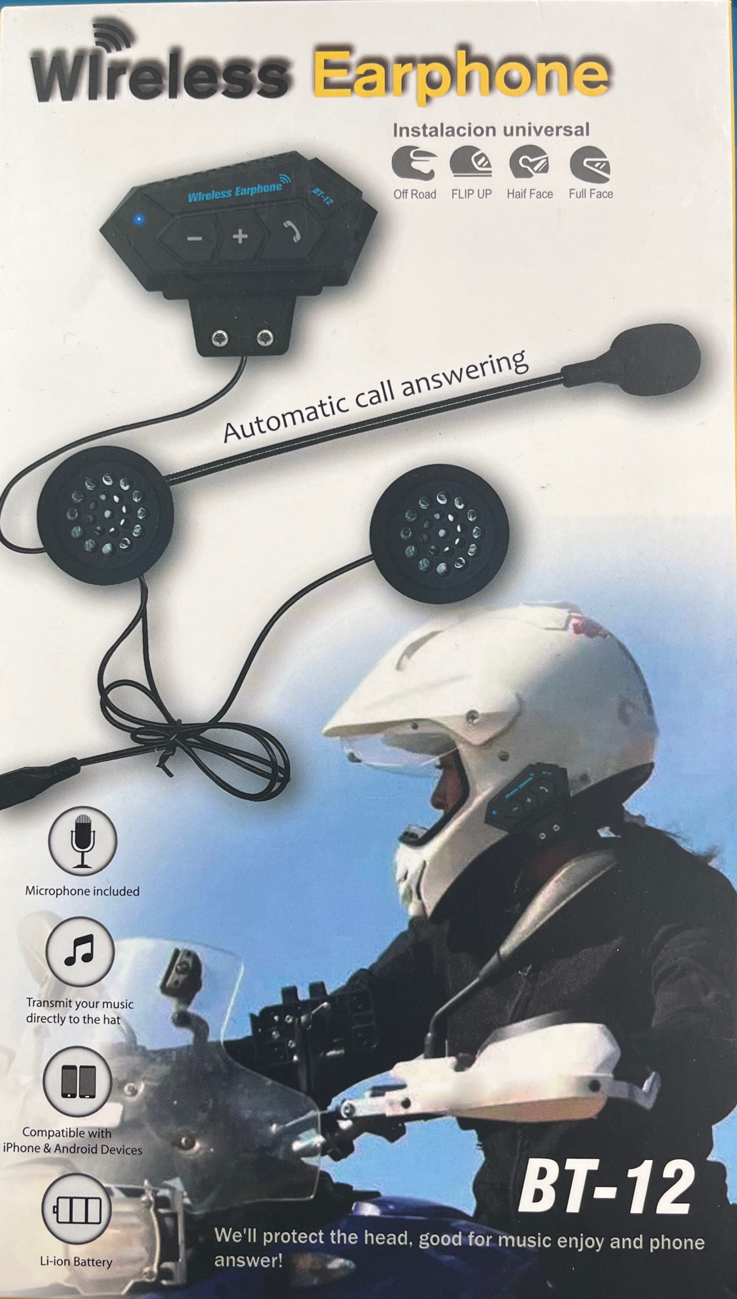 MANOS LIBRES BT PARA CASCO MOTO BT12